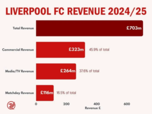 Cette décision imposée suscite la colère des fans des Reds. D’autant qu’elle intervient, comme le rappellent plusieurs médias, dans la foulée de la publication de revenus record, dépassant les 703 millions de livres. Le rapport annuel de l’UEFA sur les finances des clubs européens indique que Liverpool a généré 120 millions de livres de revenus billetterie l’an dernier (+ 27%). Le club gagne en moyenne 74 livres par spectateur et par billet vendu. Par jour de match, cela représente en moyenne 4,5 millions de livres de recettes, soit le huitième total le plus élevé en Europe.
