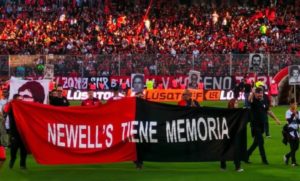 Avant le match entre Newells et le Gimnasia de Mendoza, alors que les supporters locaux avaient déployé une banderole “Newells tiene memoria” (“Newells a de la mémoire”), des membres de la “Ronda de Madres” de Rosario ont défilé sur le terrain, derrière leur banderole. Sur une autre, on pouvait voir de nombreux portraits de disparus, avec le message “Compañeros presente!!! Hasta la Victoria siempre”.