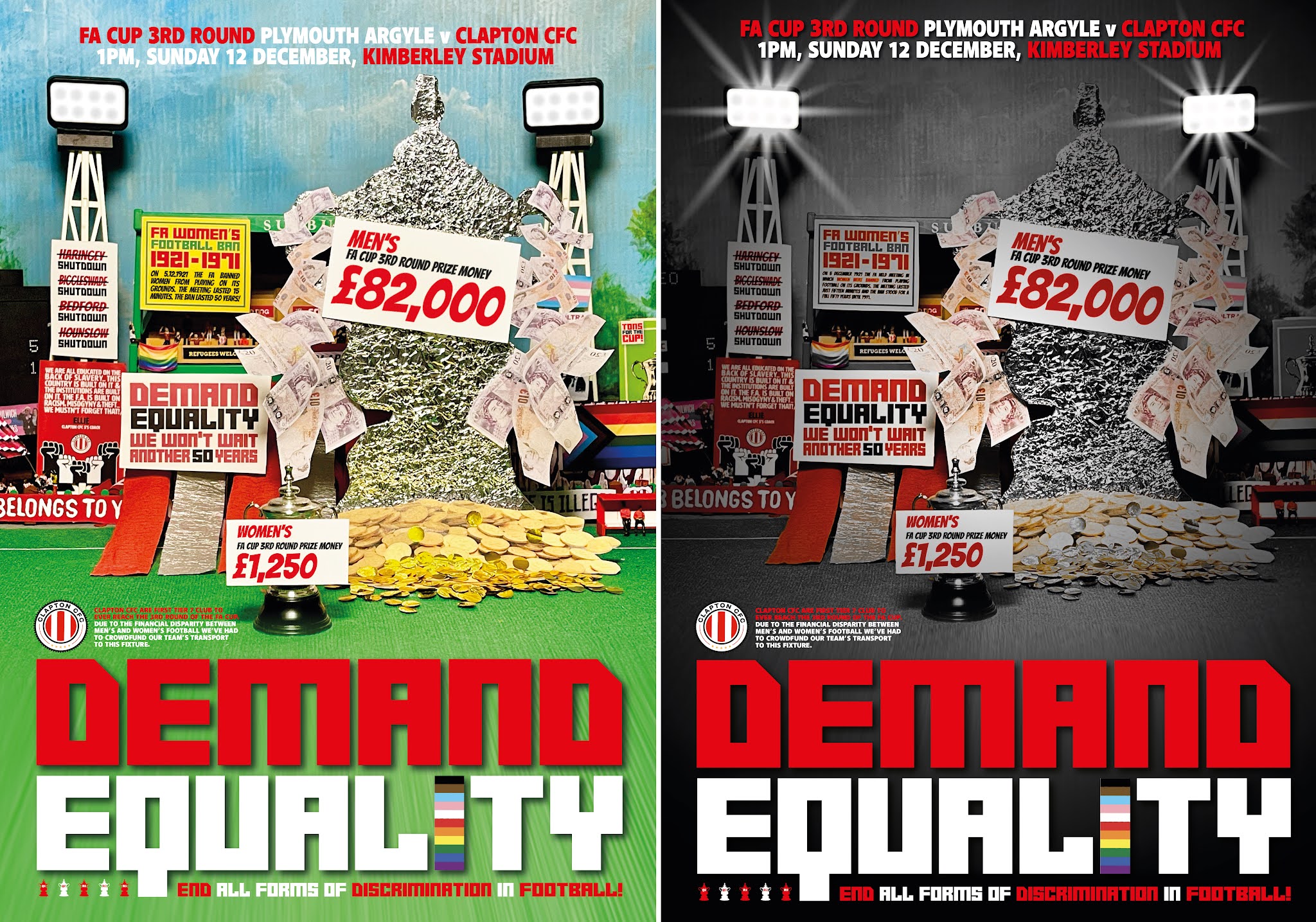 C’est l’occasion de pointer du doigt l’écart indécent entre la rétribution des équipes masculines et féminines en FA Cup. “Nous savons qu’un parcours similaire dans la compétition masculine rapporterait beaucoup plus” souligne le coach Claudio Gomes. En effet, en cas de victoire, les clubs féminins n’empocheront que 1 250 £ supplémentaires, contre 82 000 £ pour leurs homologues masculins au même stade. Face à cette inégalité manifeste, une affiche réclamant l’égalité a été publiée. Dessus on peut notamment lire “On n’attendra pas 50 années de plus“.